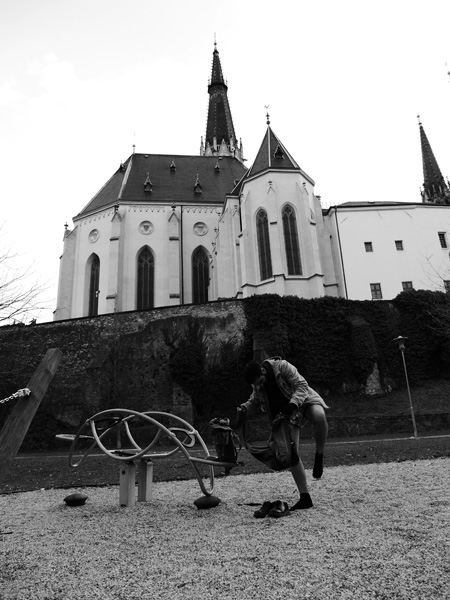 Vevnitř a venku různé fotky z různý měst, s různými lidmi, konec zimy, začátek jara
